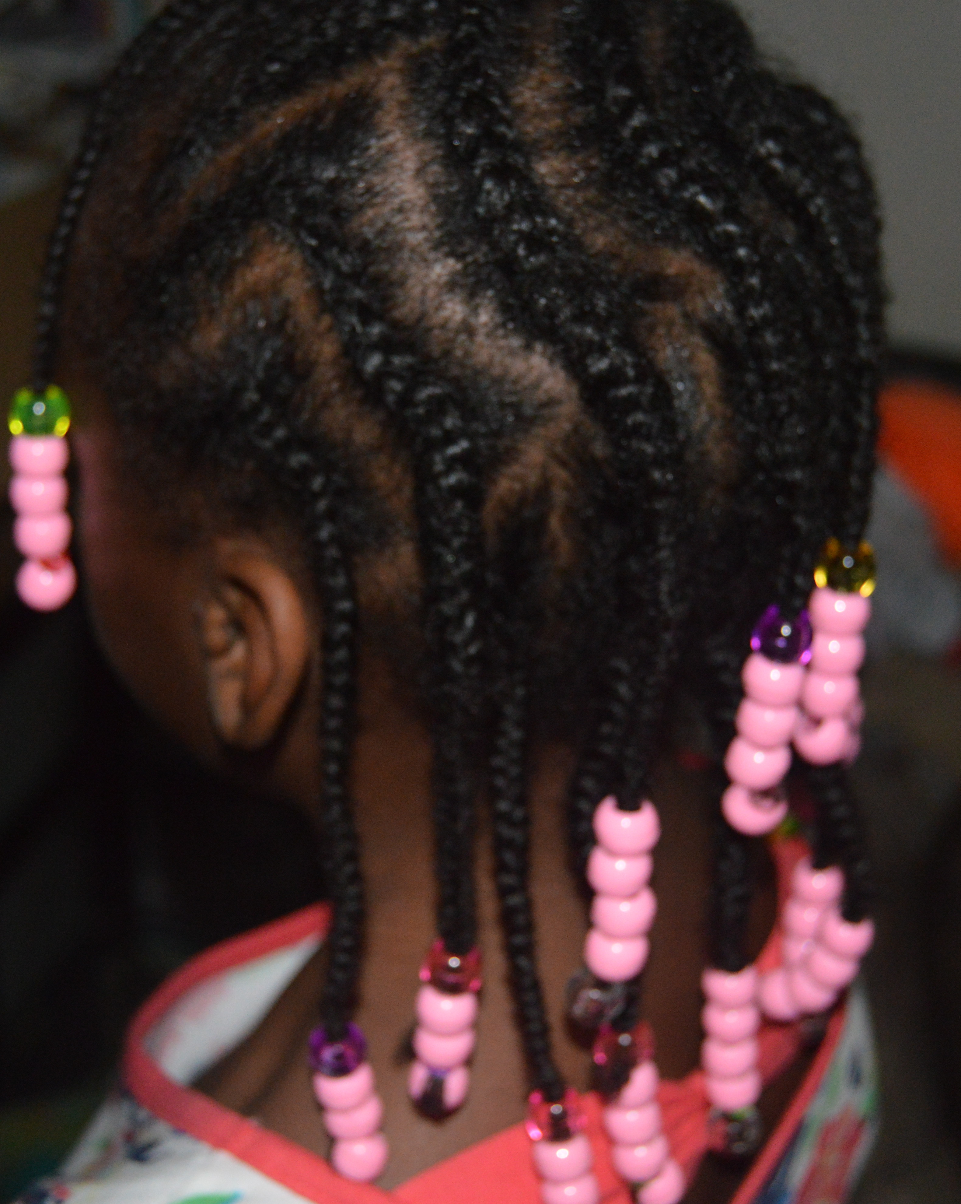 After unbraiding my daughter’s hair I applied the pre -wash from my last post to help soften her hair and bring any dirt and grease to the surface. Then I was with the cleanser and conditioner. I did change my final step this time. I used one of the styling products instead of the leave in conditioner. I used a curl smoother cream so my daughter’s hair wouldn’t be as coily as it usually is. The products in the styling line include the curl smoother, curl perfecter, smoothing edges creme and smoothing gel.