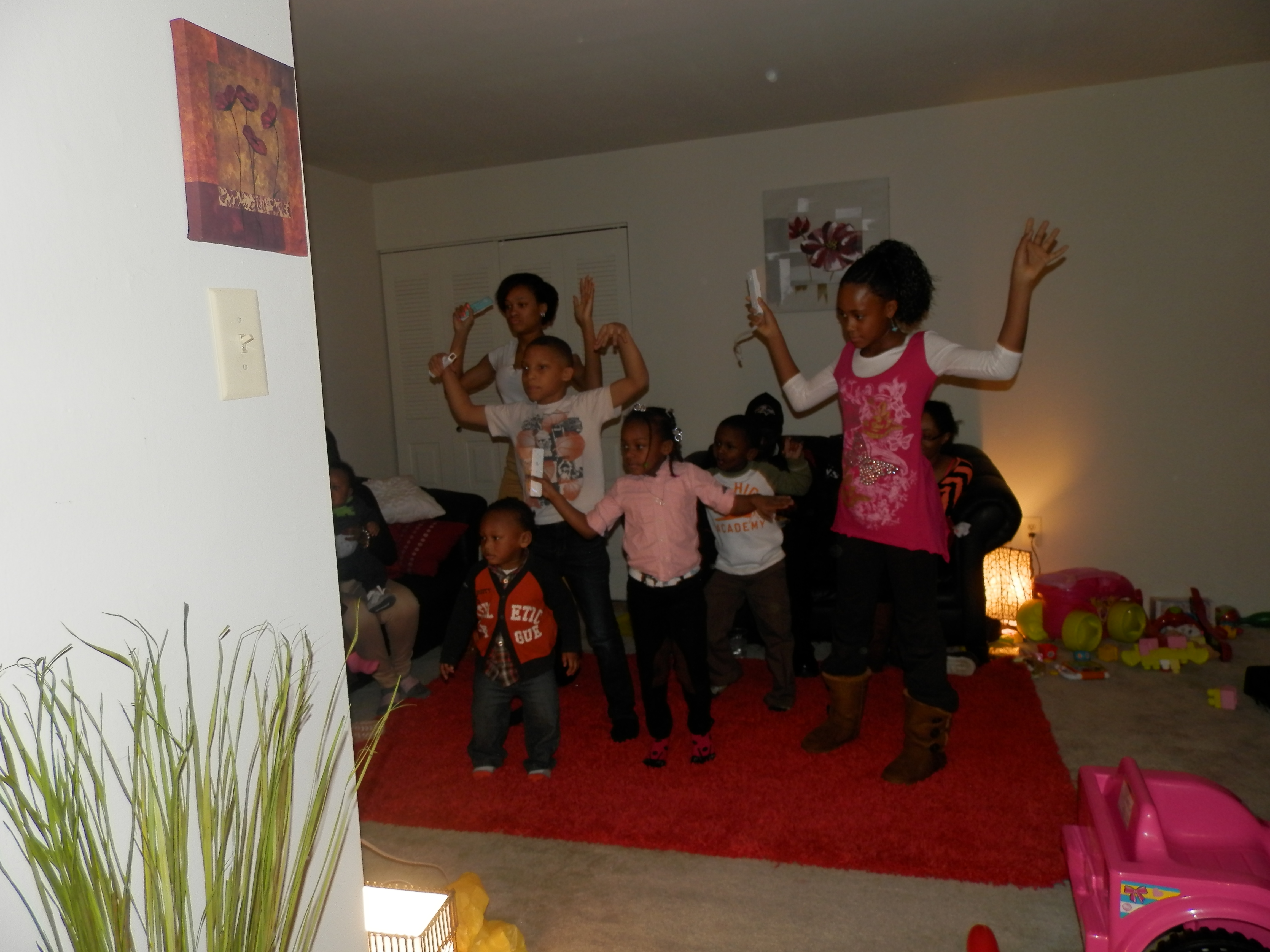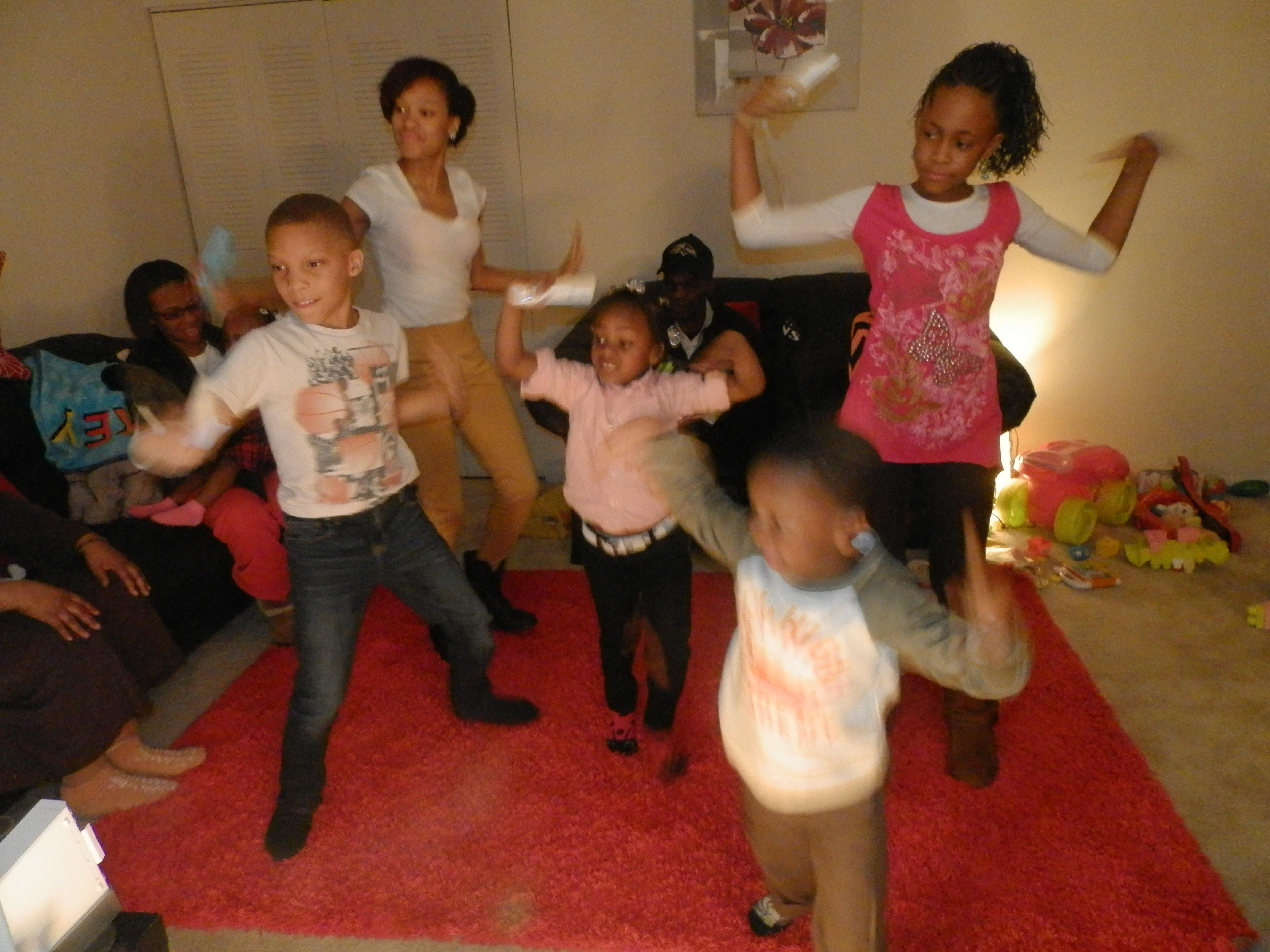 The kids like to dance and have fun while we’re waiting for our favorite team to play. They are always ready for some dancing and fun. No party would be complete without food though.