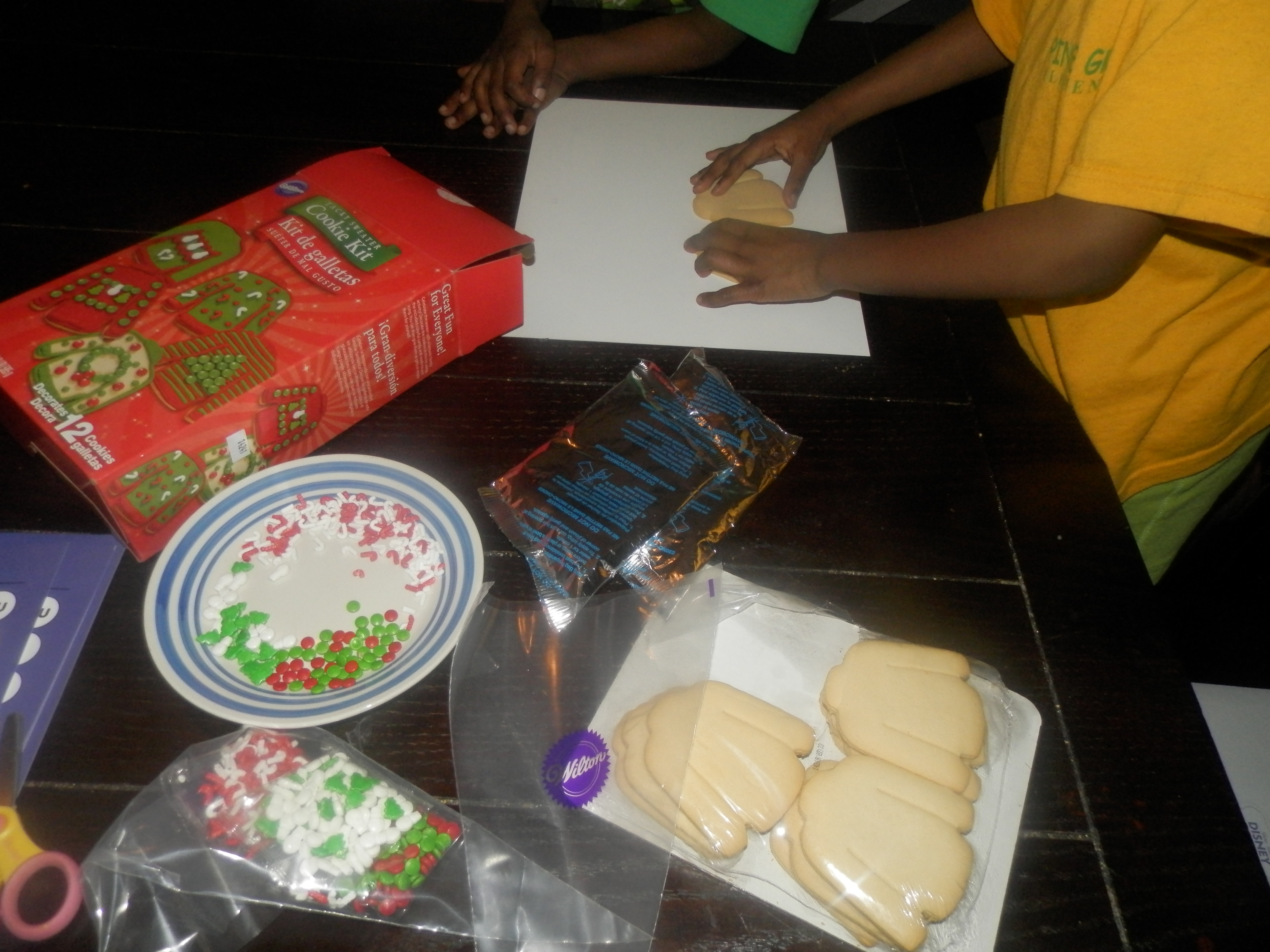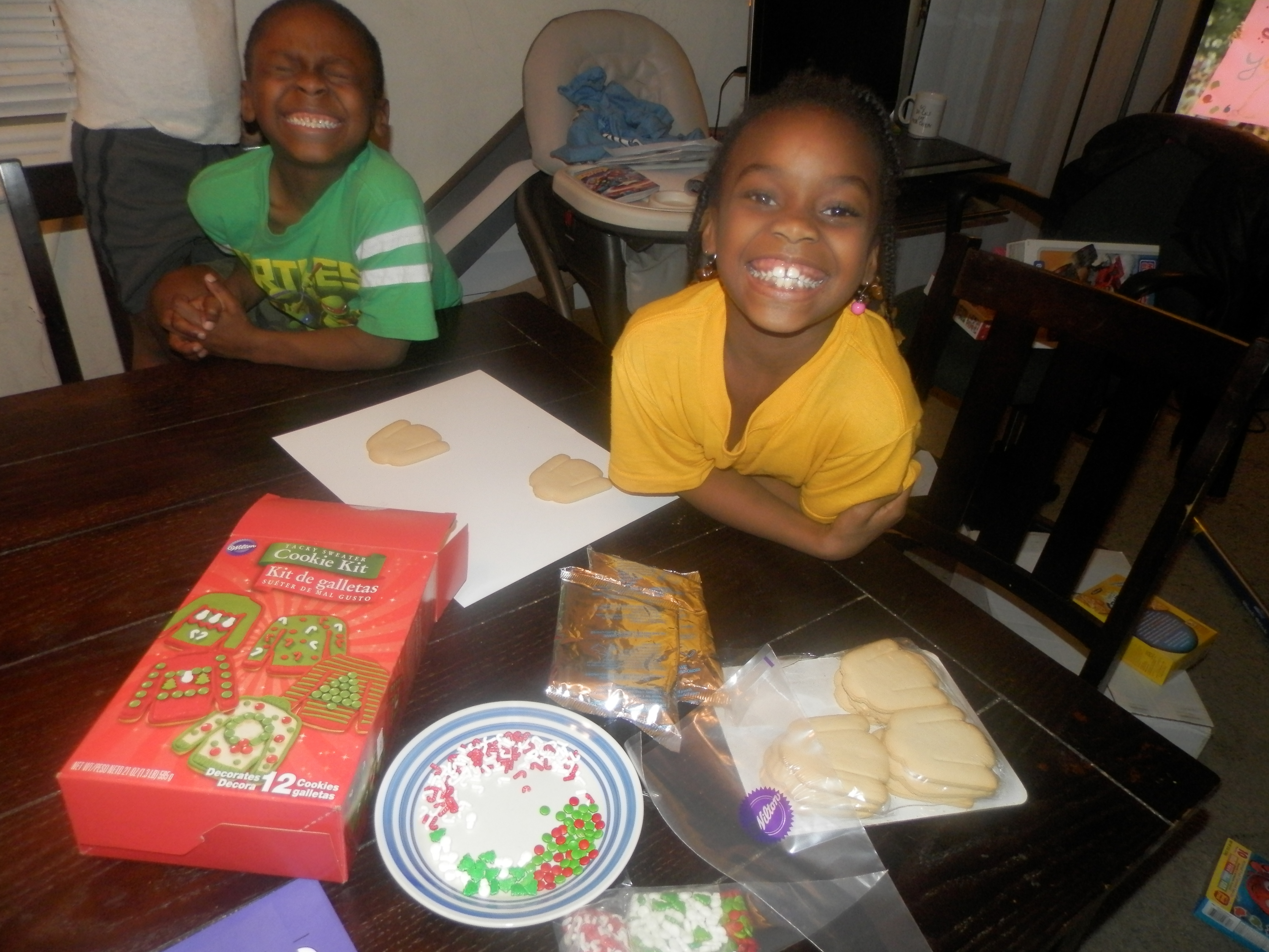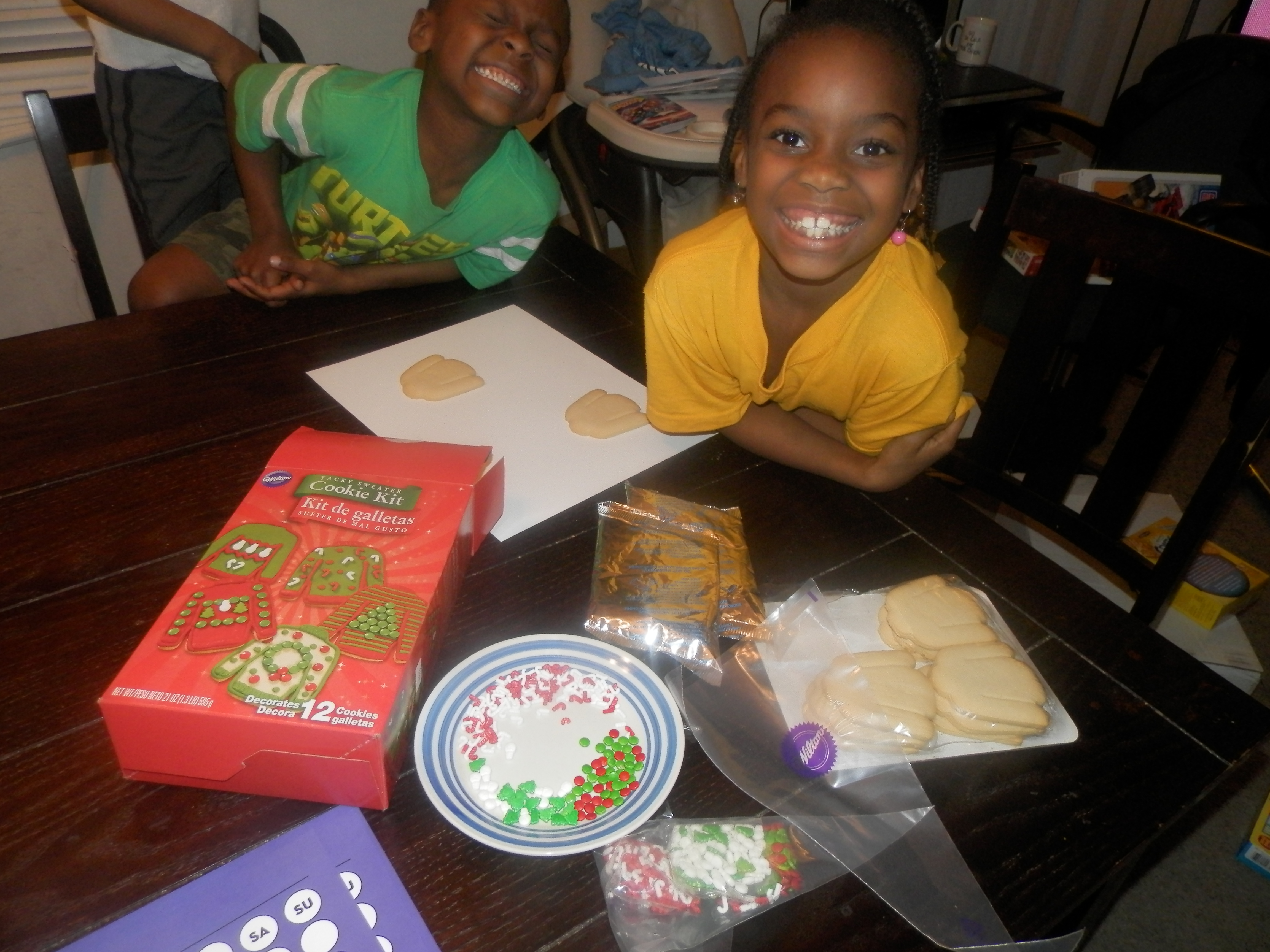 We got lots of great goodies to help us celebrate the holidays in style. The first thing we tried was making were cake pops with the sprinkles for the holidays. Unfortunately it was a horrible fail. I let the kids decorate and they went sprinkles crazy. We couldn’t get good photos but they had so much fun and enjoyed making the cake pops. It’s a memory they’ll never forget. Some of the other items in our kit included a Tacky Sweater Kit, Gingerbread House Kit, Cookie Cutters, Cookie Icing and more.