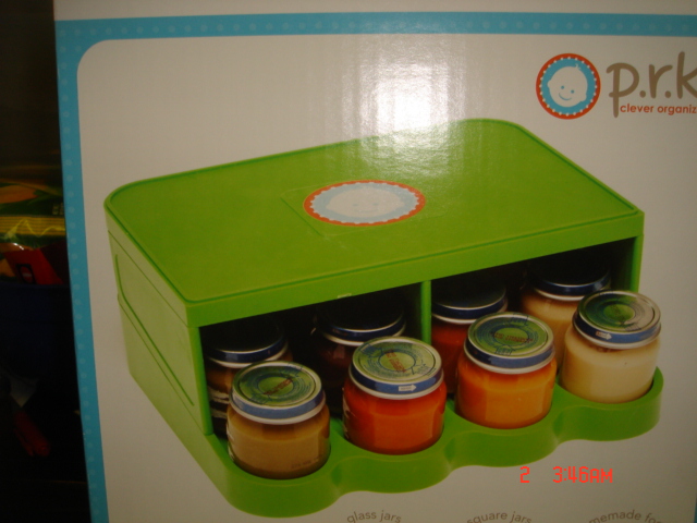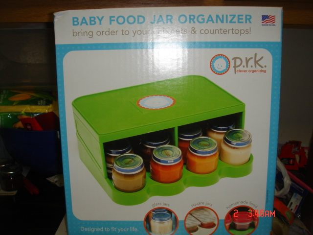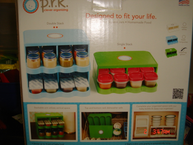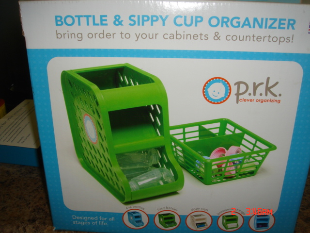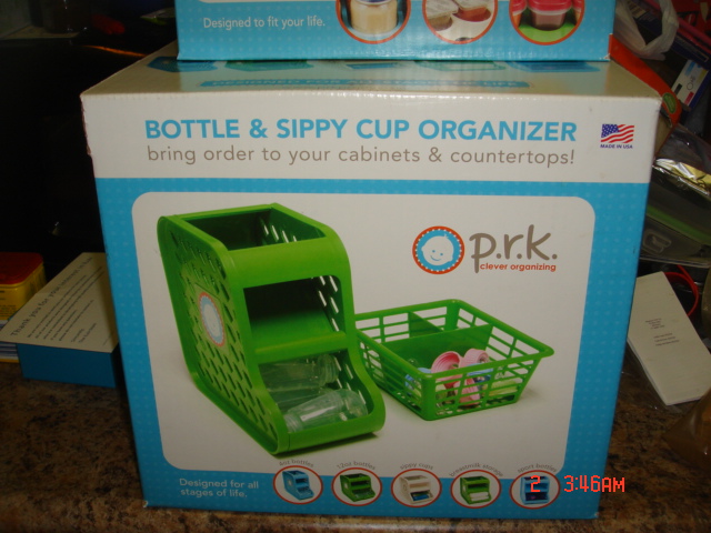 One of my biggest things to keep organized with my children are baby bottles, sippy cups and packages of baby food. Currently I am using the top rack of my dishwasher to hold and organize baby bottles. The sippy cups are stacked in the cupboards and the baby food is just all over the place. I really hate having to organize the bottles since there are different sizes and it seems like nothing I was using worked. I received two products from P.R.K for review. I got a bottle organizer and a jar organizer.