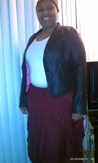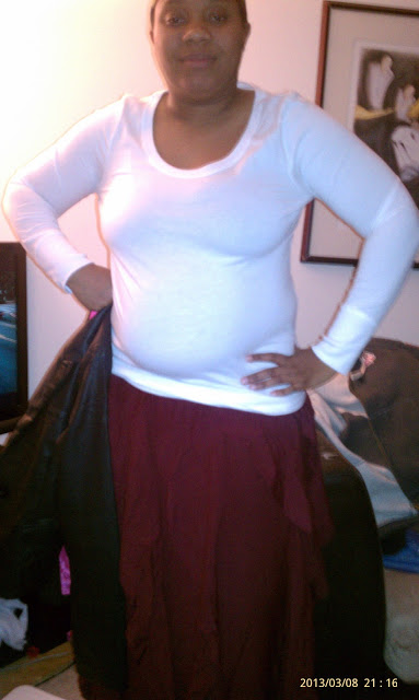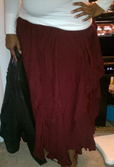 Here are some photos of me in my skirt. I got it in a cranberry color. I love the fit of my skirt, it’s flowing and makes me feel lady like. The material is very soft and light and with the skirt I wanted to show you could just wear it with a tee or put on a blazer and dress it up some more. My skirt has enough layers to keep me warm when its cool outside but also its light enough so I am not too hot in the warmer weather.