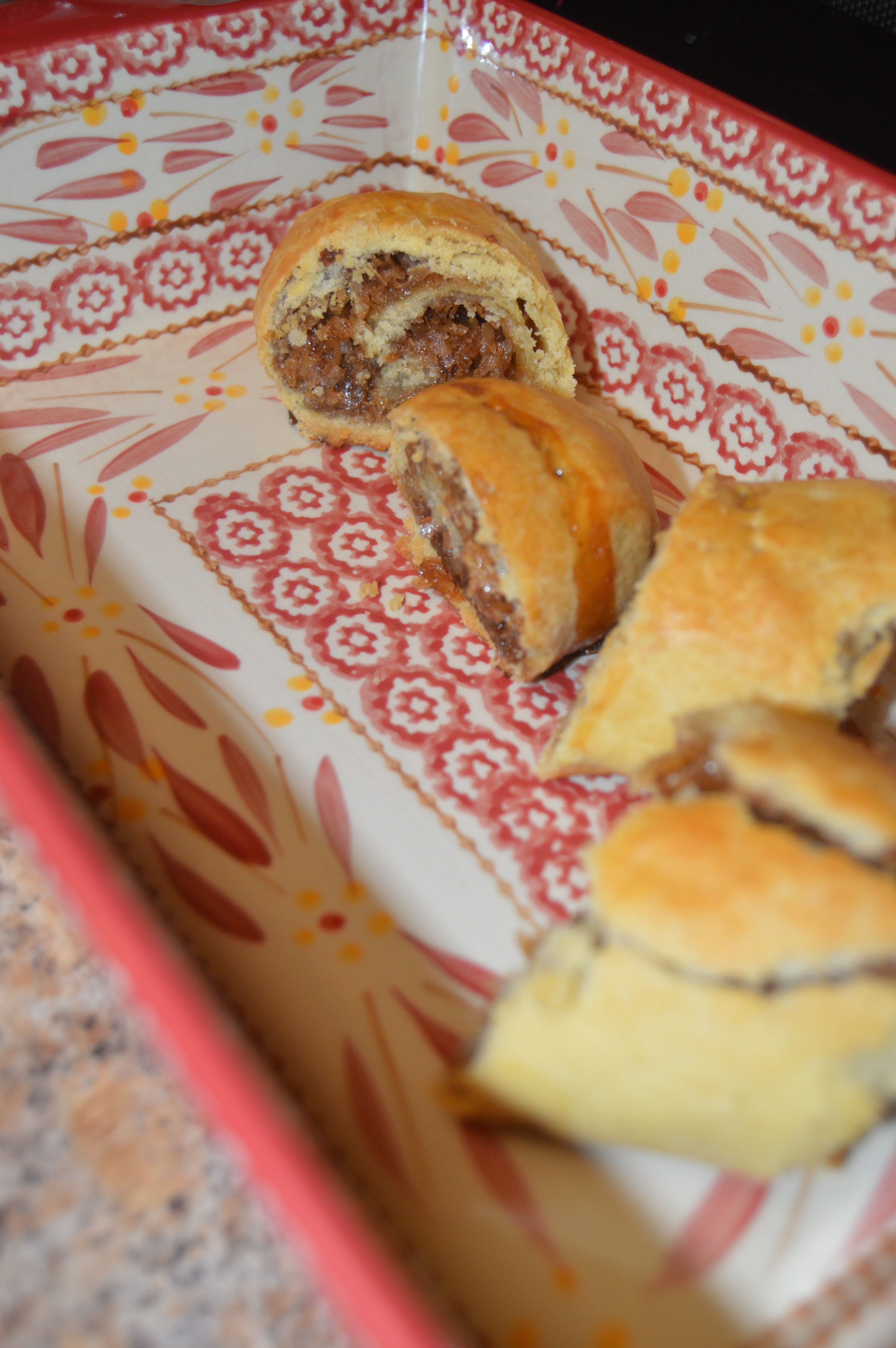 - Remove from oven and allow to cool completely before cutting into 2 inch pieces. Cut diagonally and serve. Store rolls in an air tight container.